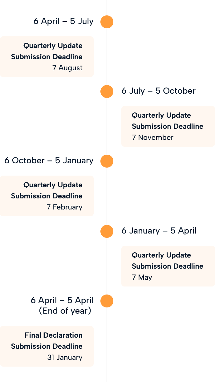 Under Making Tax Digital, you’ll send four quarterly updates in addition to a final declaration.